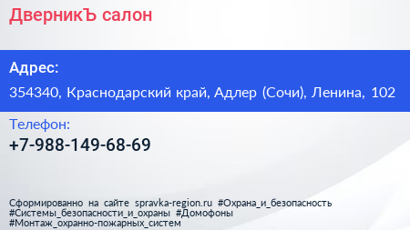 ДверникЪ, салон по адресу 354340, Краснодарский край, Адлер (Сочи), Ленина, 102 в дальнейшем Организация, размещена в следующих категориях: