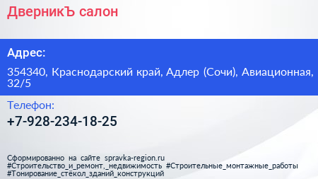 ДверникЪ, салон по адресу 354340, Краснодарский край, Адлер (Сочи), Авиационная, 32/5 в дальнейшем Организация, размещена в следующих категориях: