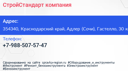 СтройСтандарт, компания по адресу 354340, Краснодарский край, Адлер (Сочи), Гастелло, 30 к1 в дальнейшем Организация, размещена в следующих категориях: