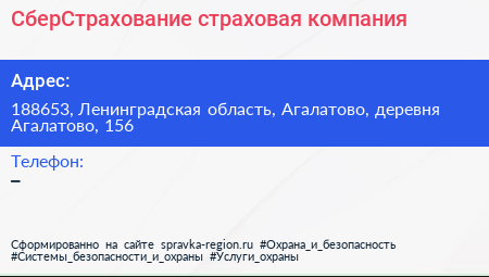 СберСтрахование, страховая компания по адресу 188653, Ленинградская область, Агалатово, деревня Агалатово, 156 в дальнейшем Организация, размещена в следующих категориях: