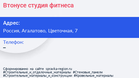 Втонусе, студия фитнеса по адресу 7, Цветочная улица, СНТ Касимово-2, Касимово, Агалатовское сельское поселение, Всеволожский район, Ленинградская область, Северо-Западный федеральный округ, 188653, Россия в дальнейшем Организация, размещена в следующих категориях: