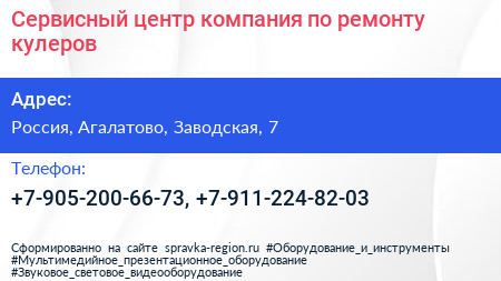 Сервисный центр, компания по ремонту кулеров по адресу 7, Заводская улица, Лесопилка, Агалатовское сельское поселение, Всеволожский район, Ленинградская область, Северо-Западный федеральный округ, 188653, Россия в дальнейшем Организация, размещена в следующих категориях: