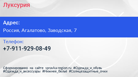 Луксурия по адресу 7, Заводская улица, Лесопилка, Агалатовское сельское поселение, Всеволожский район, Ленинградская область, Северо-Западный федеральный округ, 188653, Россия в дальнейшем Организация, размещена в следующих категориях: