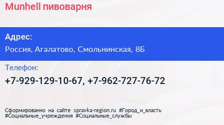 Munhell, пивоварня по адресу Пивоварня Munhell, 9, Смольнинская улица, ЖК «Шуваловский парк», Вартемяги, Агалатовское сельское поселение, Всеволожский район, Ленинградская область, Северо-Западный федеральный округ, 188653, Россия в дальнейшем Организация, размещена в следующих категориях: