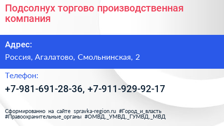 Подсолнух, торгово-производственная компания по адресу 2, Смольнинская улица, ЖК «Шуваловский парк», Вартемяги, Агалатовское сельское поселение, Всеволожский район, Ленинградская область, Северо-Западный федеральный округ, 188653, Россия в дальнейшем Организация, размещена в следующих категориях: