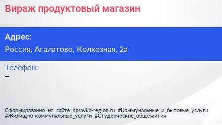 Вираж, продуктовый магазин по адресу Продукты, 2А, Колхозная улица, ЖК «Шуваловский парк», Вартемяги, Агалатовское сельское поселение, Всеволожский район, Ленинградская область, Северо-Западный федеральный округ, 188653, Россия в дальнейшем Организация, размещена в следующих категориях: