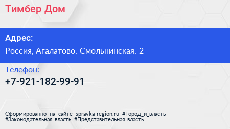 Тимбер Дом по адресу 2, Смольнинская улица, ЖК «Шуваловский парк», Вартемяги, Агалатовское сельское поселение, Всеволожский район, Ленинградская область, Северо-Западный федеральный округ, 188653, Россия в дальнейшем Организация, размещена в следующих категориях: