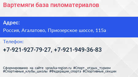 Вартемяги, база пиломатериалов по адресу 115А, Приозерское шоссе, ЖК «Шуваловский парк», Вартемяги, Агалатовское сельское поселение, Всеволожский район, Ленинградская область, Северо-Западный федеральный округ, 188653, Россия в дальнейшем Организация, размещена в следующих категориях: