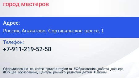 город мастеров по адресу Большой Дом Древесины СПб, «Сортавала», Агалатовское сельское поселение, Всеволожский район, Ленинградская область, Северо-Западный федеральный округ, 188653, Россия в дальнейшем Организация, размещена в следующих категориях: