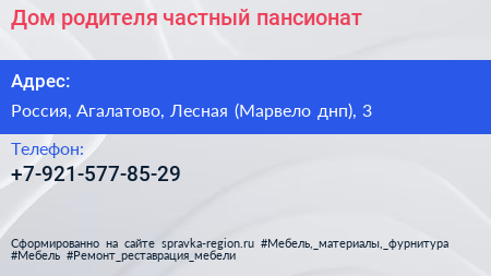 Для связи с организацией воспользуйтесь номером телефона: +7-921-577-85-29. Ежедневно с 08:00 до 20:00, вы можете обратиться в эту организацию.
