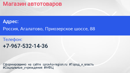 Магазин автотоваров по адресу 88, Приозерское шоссе, ЖК «Шуваловский парк», Вартемяги, Агалатовское сельское поселение, Всеволожский район, Ленинградская область, Северо-Западный федеральный округ, 188653, Россия в дальнейшем Организация, размещена в следующих категориях: