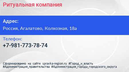 Ритуальная компания по адресу Колхозная улица, ЖК «Шуваловский парк», Вартемяги, Агалатовское сельское поселение, Всеволожский район, Ленинградская область, Северо-Западный федеральный округ, 188653, Россия в дальнейшем Организация, размещена в следующих категориях: