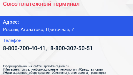 Союз, платежный терминал по адресу 7, Цветочная улица, СНТ Касимово-2, Касимово, Агалатовское сельское поселение, Всеволожский район, Ленинградская область, Северо-Западный федеральный округ, 188653, Россия в дальнейшем Организация, размещена в следующих категориях: