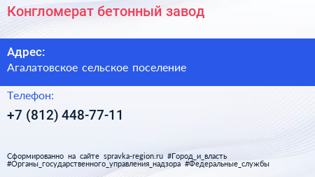 Конгломерат, бетонный завод по адресу Агалатовское сельское поселение в дальнейшем Организация, размещена в следующих категориях: