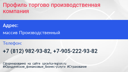 Профиль, торгово-производственная компания по адресу массив Производственный в дальнейшем Организация, размещена в следующих категориях: