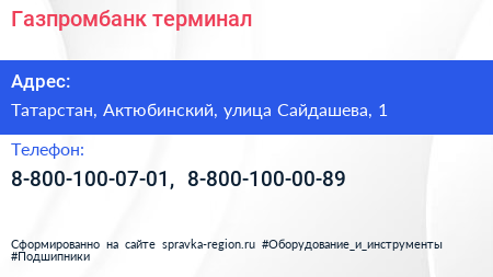 Газпромбанк, терминал по адресу Татарстан, Актюбинский, улица Сайдашева, 1 в дальнейшем Организация, размещена в следующих категориях: