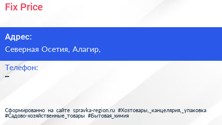 Fix Price по адресу Северная Осетия, Алагир, в дальнейшем Организация, размещена в следующих категориях: