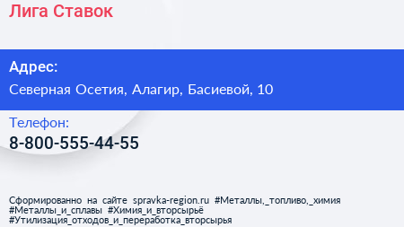 Лига Ставок по адресу Северная Осетия, Алагир, Басиевой, 10 в дальнейшем Организация, размещена в следующих категориях:
