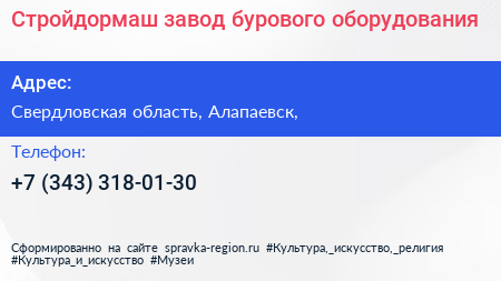 Стройдормаш, завод бурового оборудования по адресу Свердловская область, Алапаевск, в дальнейшем Организация, размещена в следующих категориях: