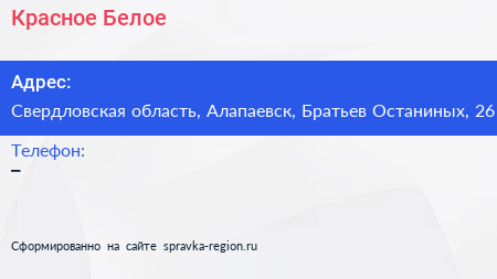 Красное & Белое по адресу Свердловская область, Алапаевск, Братьев Останиных, 26 в дальнейшем Организация, размещена в следующих категориях: