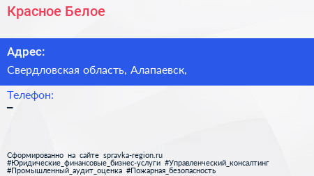 Красное & Белое по адресу Свердловская область, Алапаевск, в дальнейшем Организация, размещена в следующих категориях: