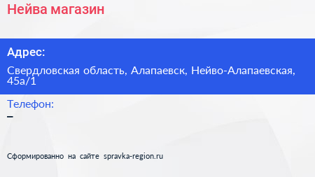 Нейва, магазин по адресу Свердловская область, Алапаевск, Нейво-Алапаевская, 45а/1 в дальнейшем Организация, размещена в следующих категориях: