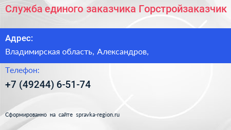 Служба единого заказчика, Горстройзаказчик по адресу Владимирская область, Александров, в дальнейшем Организация, размещена в следующих категориях:
