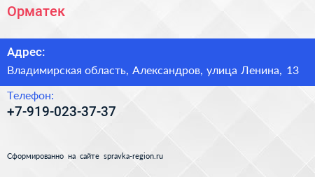 Орматек по адресу Владимирская область, Александров, улица Ленина, 13 в дальнейшем Организация, размещена в следующих категориях: