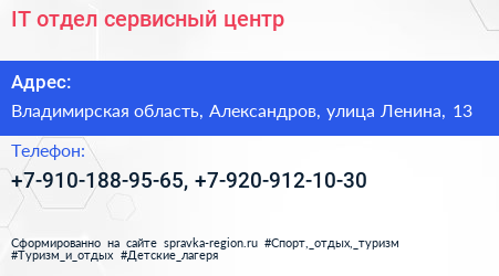 IT-отдел, сервисный центр по адресу Владимирская область, Александров, улица Ленина, 13 в дальнейшем Организация, размещена в следующих категориях: