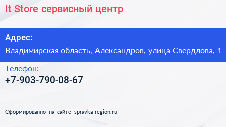 It & Store, сервисный центр по адресу Владимирская область, Александров, улица Свердлова, 1 в дальнейшем Организация, размещена в следующих категориях: