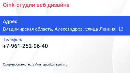 Qink, студия веб-дизайна по адресу Владимирская область, Александров, улица Ленина, 13 в дальнейшем Организация, размещена в следующих категориях: