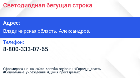Светодиодная бегущая строка по адресу Владимирская область, Александров, в дальнейшем Организация, размещена в следующих категориях: