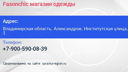 Fasonchic, магазин одежды по адресу Владимирская область, Александров, Институтская улица, 1 в дальнейшем Организация, размещена в следующих категориях: