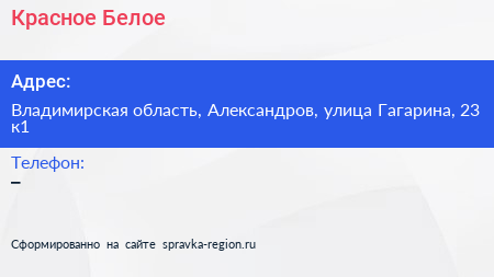 Красное & Белое по адресу Владимирская область, Александров, улица Гагарина, 23 к1 в дальнейшем Организация, размещена в следующих категориях: