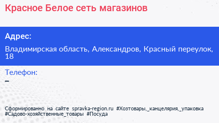 Красное & Белое, сеть магазинов по адресу Владимирская область, Александров, Красный переулок, 18 в дальнейшем Организация, размещена в следующих категориях: