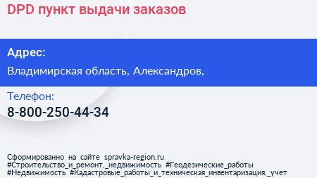 DPD, пункт выдачи заказов по адресу Владимирская область, Александров, в дальнейшем Организация, размещена в следующих категориях: