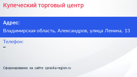 Купеческий, торговый центр по адресу Владимирская область, Александров, улица Ленина, 13 в дальнейшем Организация, размещена в следующих категориях: