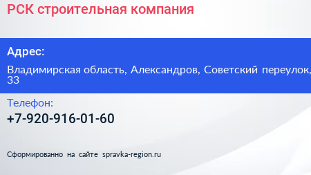 РСК, строительная компания по адресу Владимирская область, Александров, Советский переулок, 33 в дальнейшем Организация, размещена в следующих категориях: