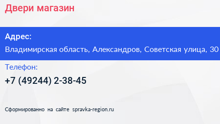 Двери, магазин по адресу Владимирская область, Александров, Советская улица, 30 в дальнейшем Организация, размещена в следующих категориях: