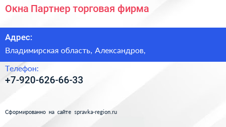Окна Партнер, торговая фирма по адресу Владимирская область, Александров, в дальнейшем Организация, размещена в следующих категориях: