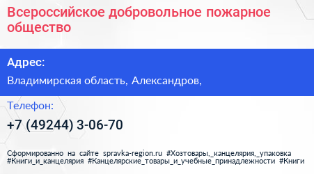 Всероссийское добровольное пожарное общество по адресу Владимирская область, Александров, в дальнейшем Организация, размещена в следующих категориях: