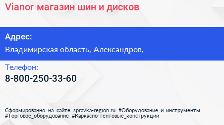 Vianor, магазин шин и дисков по адресу Владимирская область, Александров, в дальнейшем Организация, размещена в следующих категориях: