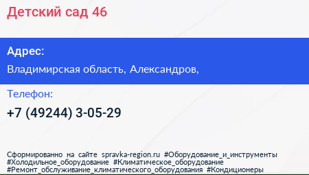 Детский сад №46 по адресу Владимирская область, Александров, в дальнейшем Организация, размещена в следующих категориях: