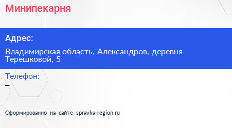 Минипекарня по адресу Владимирская область, Александров, деревня Терешковой, 5 в дальнейшем Организация, размещена в следующих категориях: