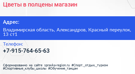 Цветы в полцены, магазин по адресу Владимирская область, Александров, Красный переулок, 13 ст1 в дальнейшем Организация, размещена в следующих категориях: