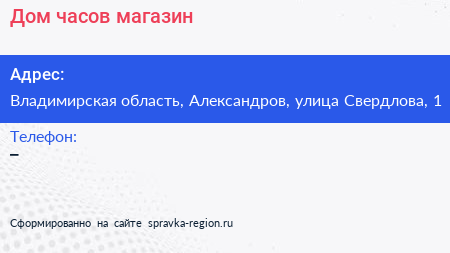 Дом часов, магазин по адресу Владимирская область, Александров, улица Свердлова, 1 в дальнейшем Организация, размещена в следующих категориях: