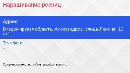 Наращивание ресниц по адресу Владимирская область, Александров, улица Ленина, 13 ст1 в дальнейшем Организация, размещена в следующих категориях: