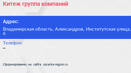 Китеж, группа компаний по адресу Владимирская область, Александров, Институтская улица, 6 в дальнейшем Организация, размещена в следующих категориях:
