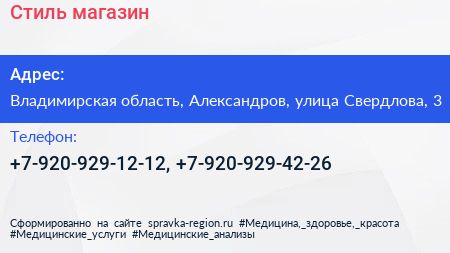 Стиль, магазин по адресу Владимирская область, Александров, улица Свердлова, 3 в дальнейшем Организация, размещена в следующих категориях: