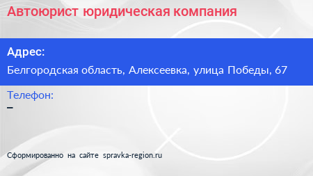 Автоюрист, юридическая компания по адресу Белгородская область, Алексеевка, улица Победы, 67 в дальнейшем Организация, размещена в следующих категориях: